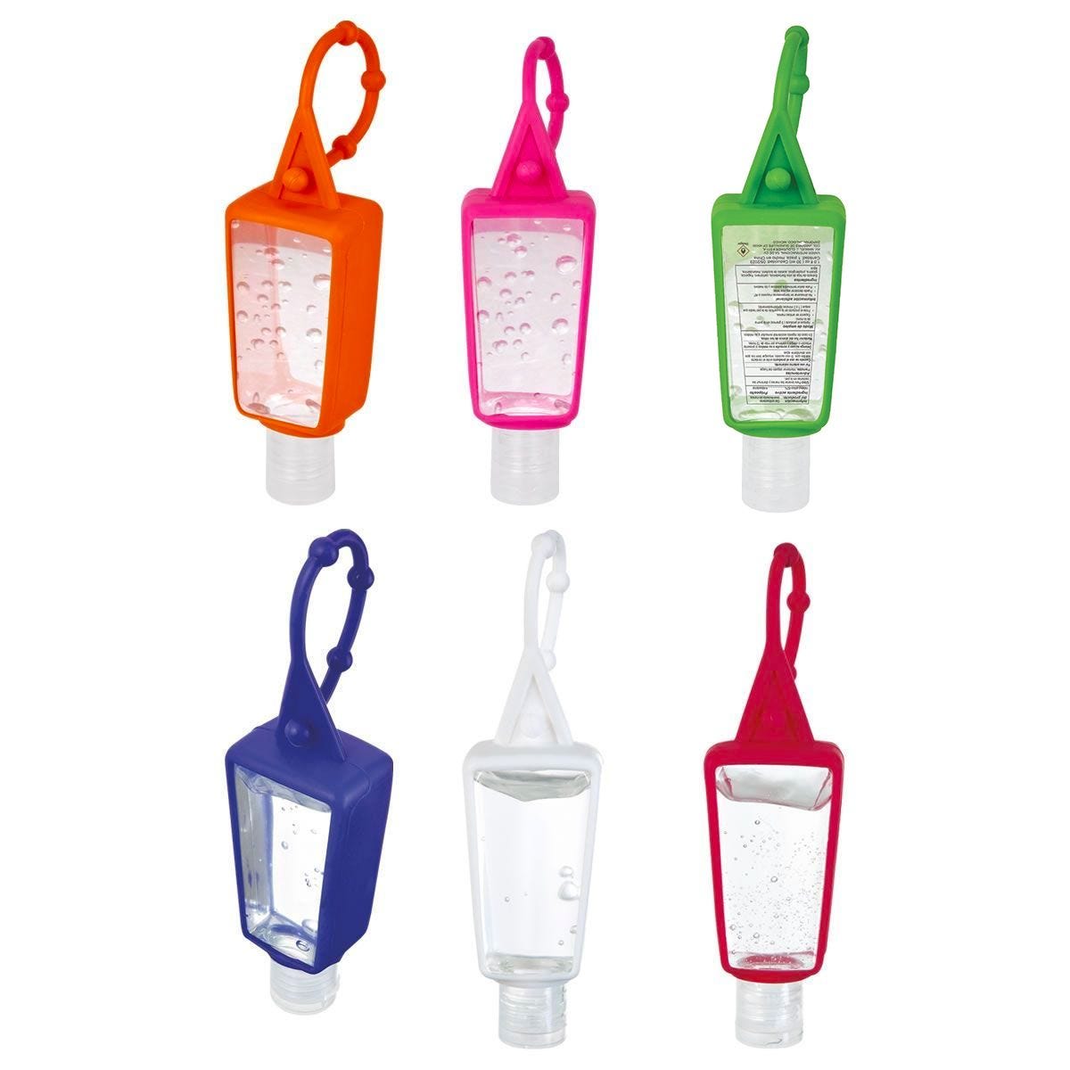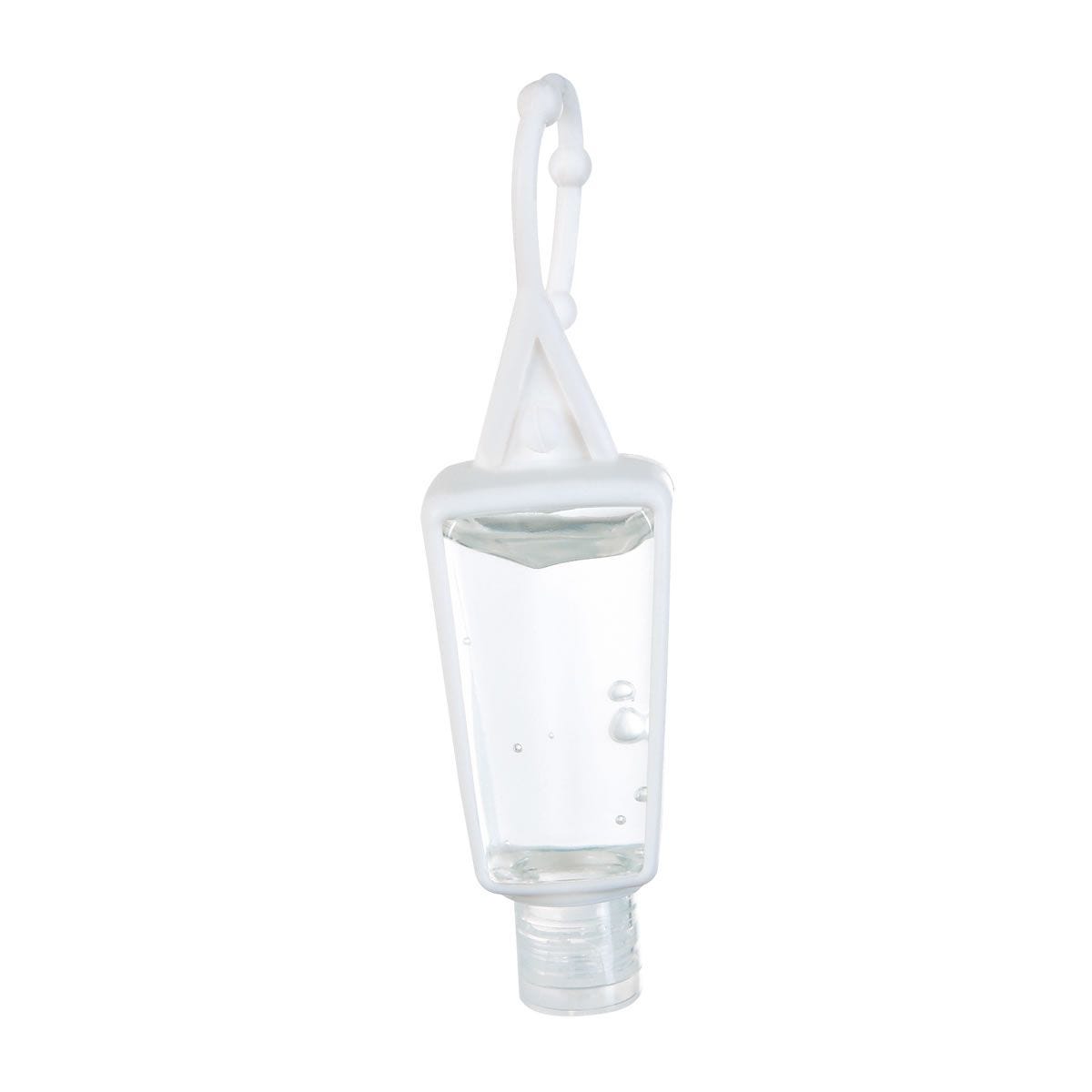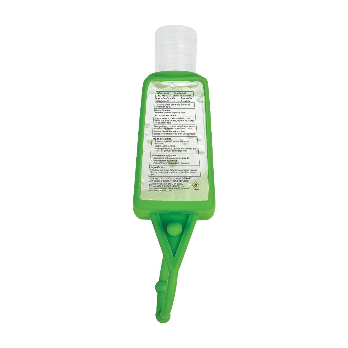 Gel sanitizante portátil y recargable. Incluye sujetador de silicón. Alcohol al 55%.