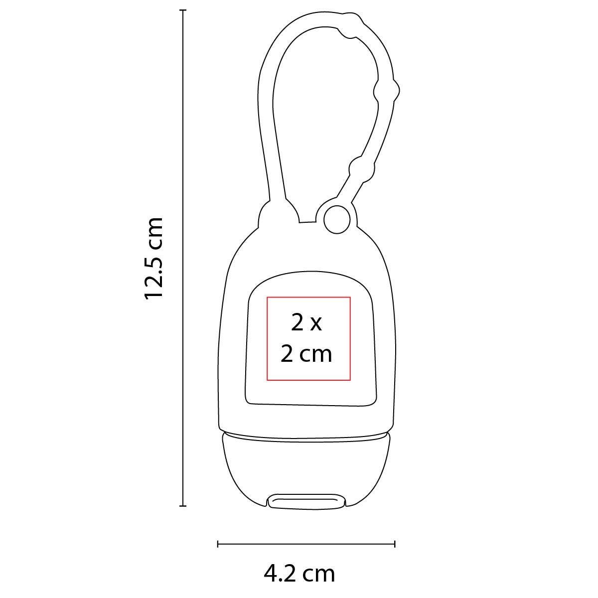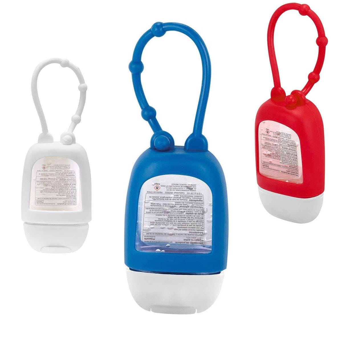 Gel sanitizante portátil y recargable. Incluye sujetador de silicón. Alcohol al 55%.
