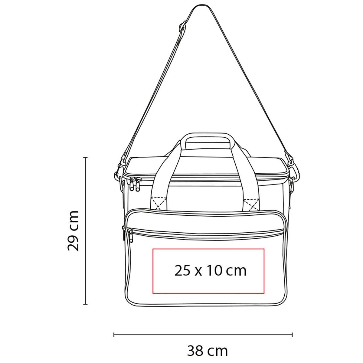 Interior plastificado. Bolsa principal, doble bolsa frontal con cierre y correa ajustable.