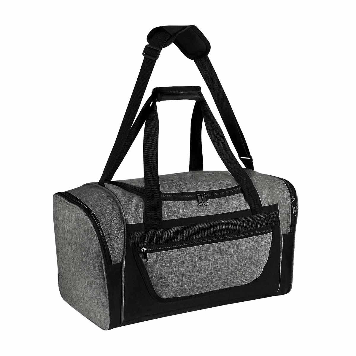 Bolsa principal, frontal y 2 bolsas laterales con cierre. Incluye correa ajustable.