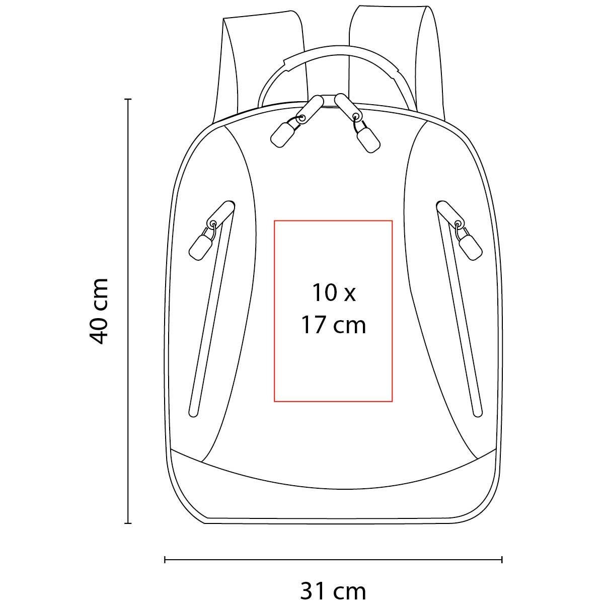 Bolsa frontal con doble cierre. Bolsa principal con organizador con 4 compartimentos.