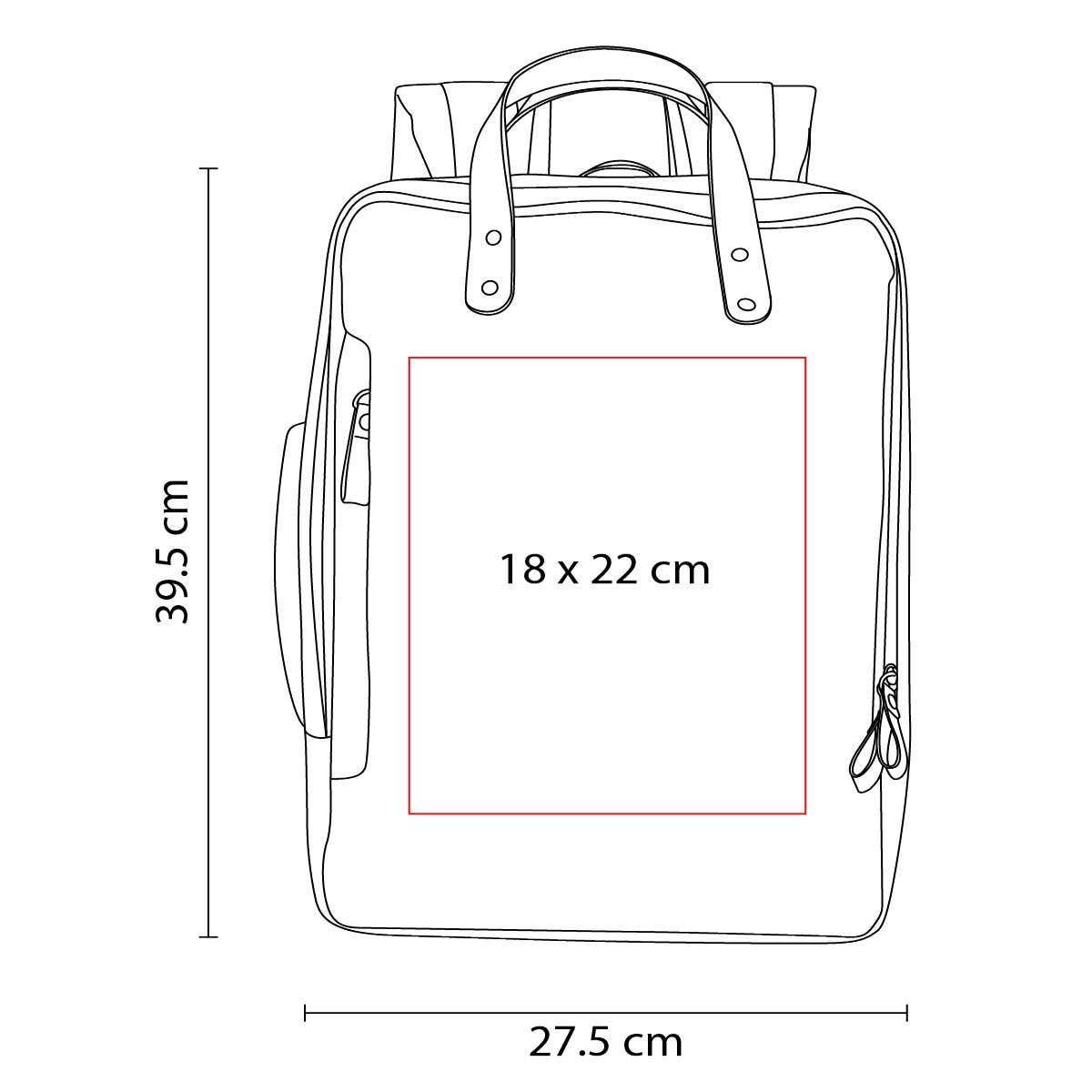 Mochila-portafolio. Bolsa principal y frontal. Espacio para laptop y tablet. Bolsa interna con organizador. Bolsa interna con cierre y red. Bolsa trasera con cierre.