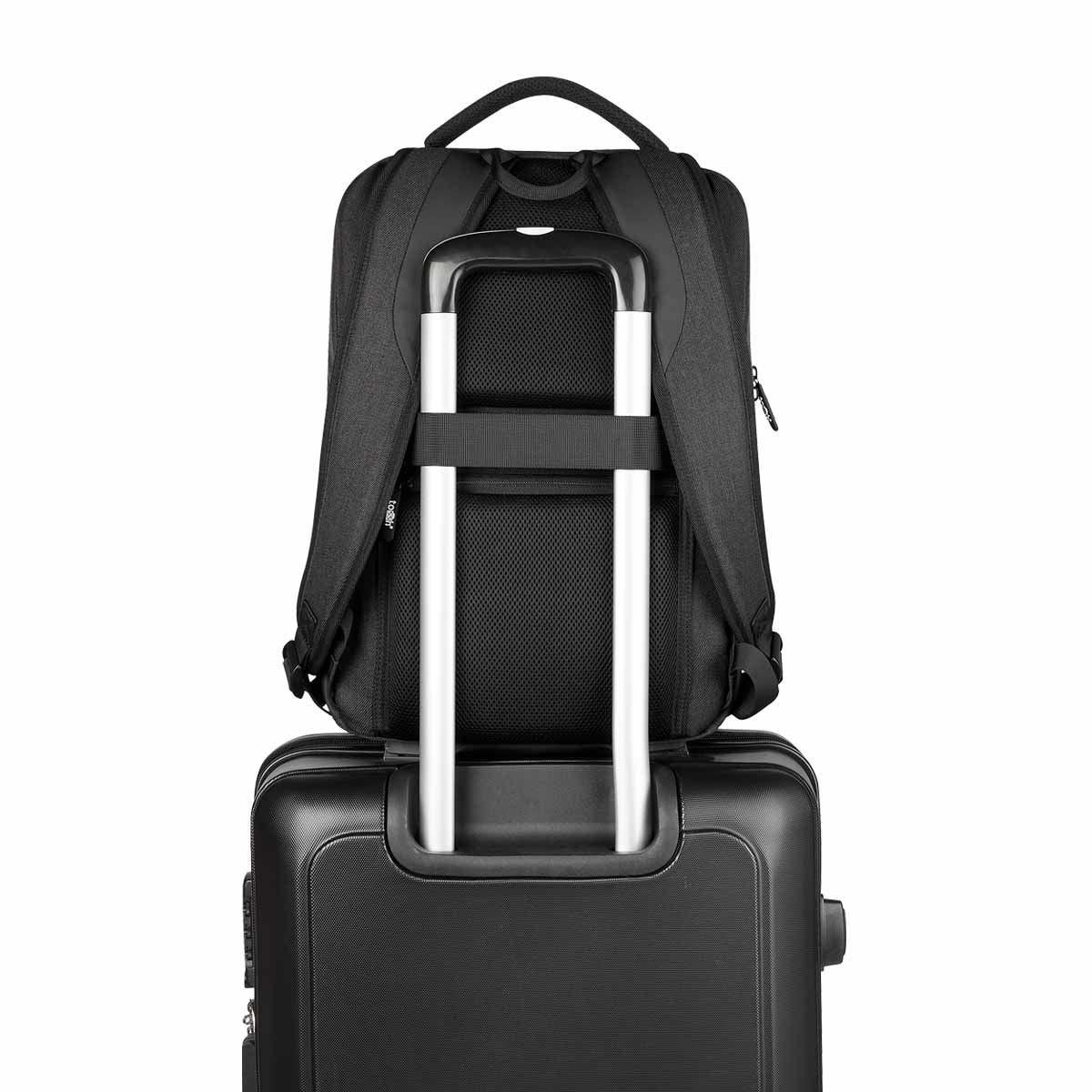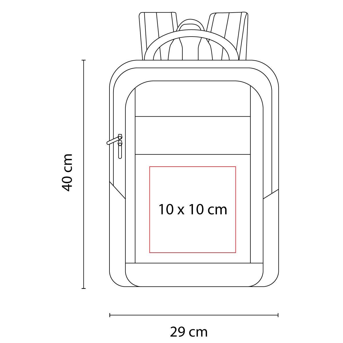Bolsa principal con espacio para laptop y tablet. Compartimento con organizador. Bolsa frontal con cierre. 2 Bolsas laterales. Aditamento especial trasero para poner en trolley. Compartimento con cierre oculto en la parte posterior trasera. Espalda y tirantes acojinados.