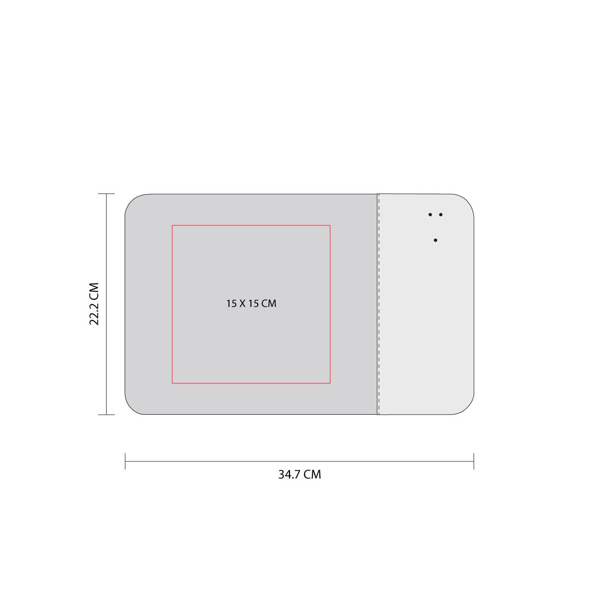 Mouse pad con cargador inalámbrico de 10W. Incluye 3 LEDs indicadores de carga y cable auxiliar tipo C de 1m.