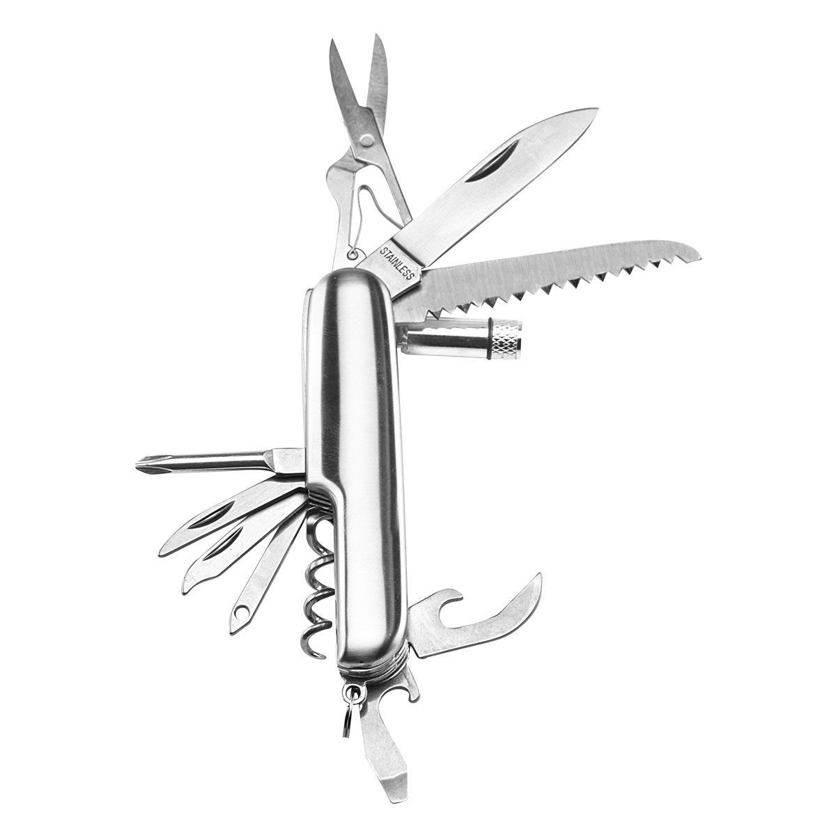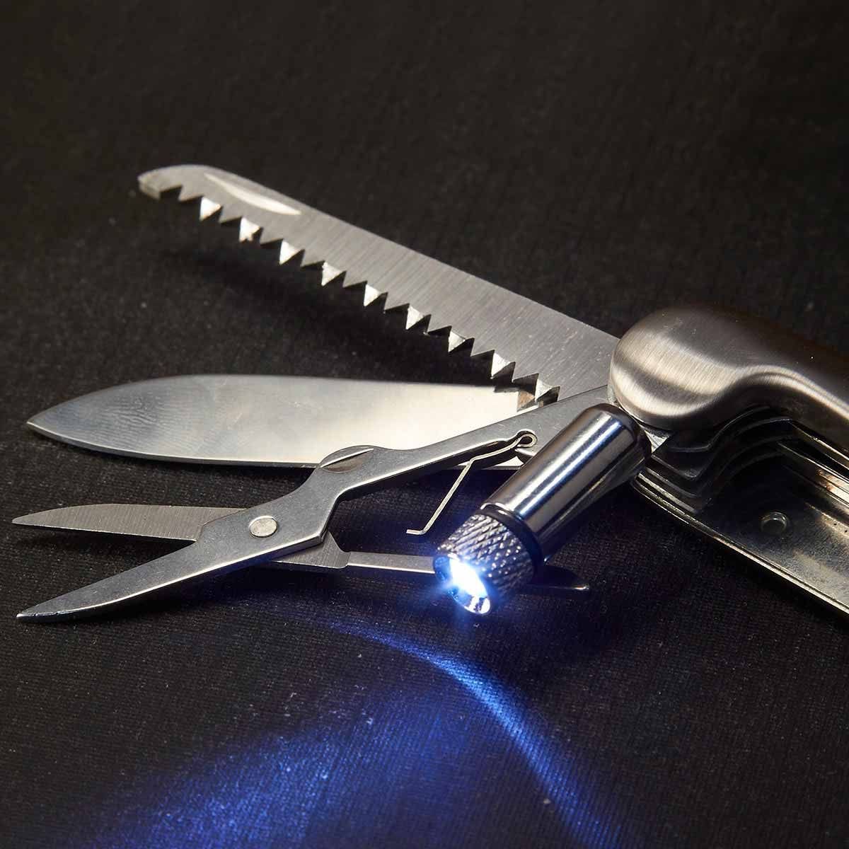 1 LED y 11 funciones. Incluye 3 baterías de botón y funda.