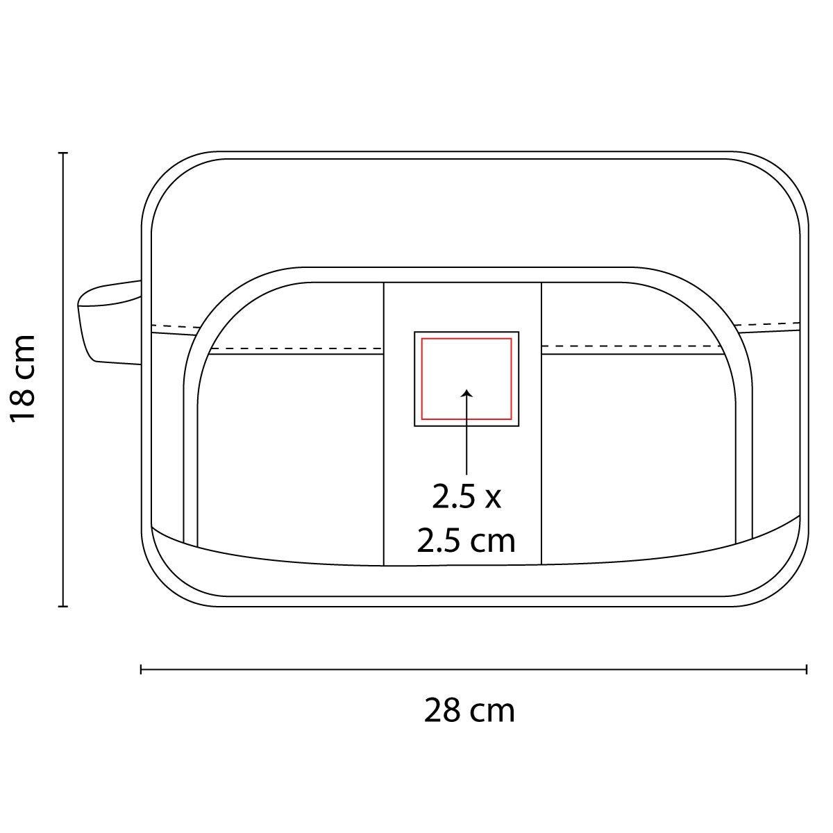 Neceser con cierre y asa en el exterior. Incluye compartimento frontal con doble cierre. Placa metálica removible para fácil grabado.