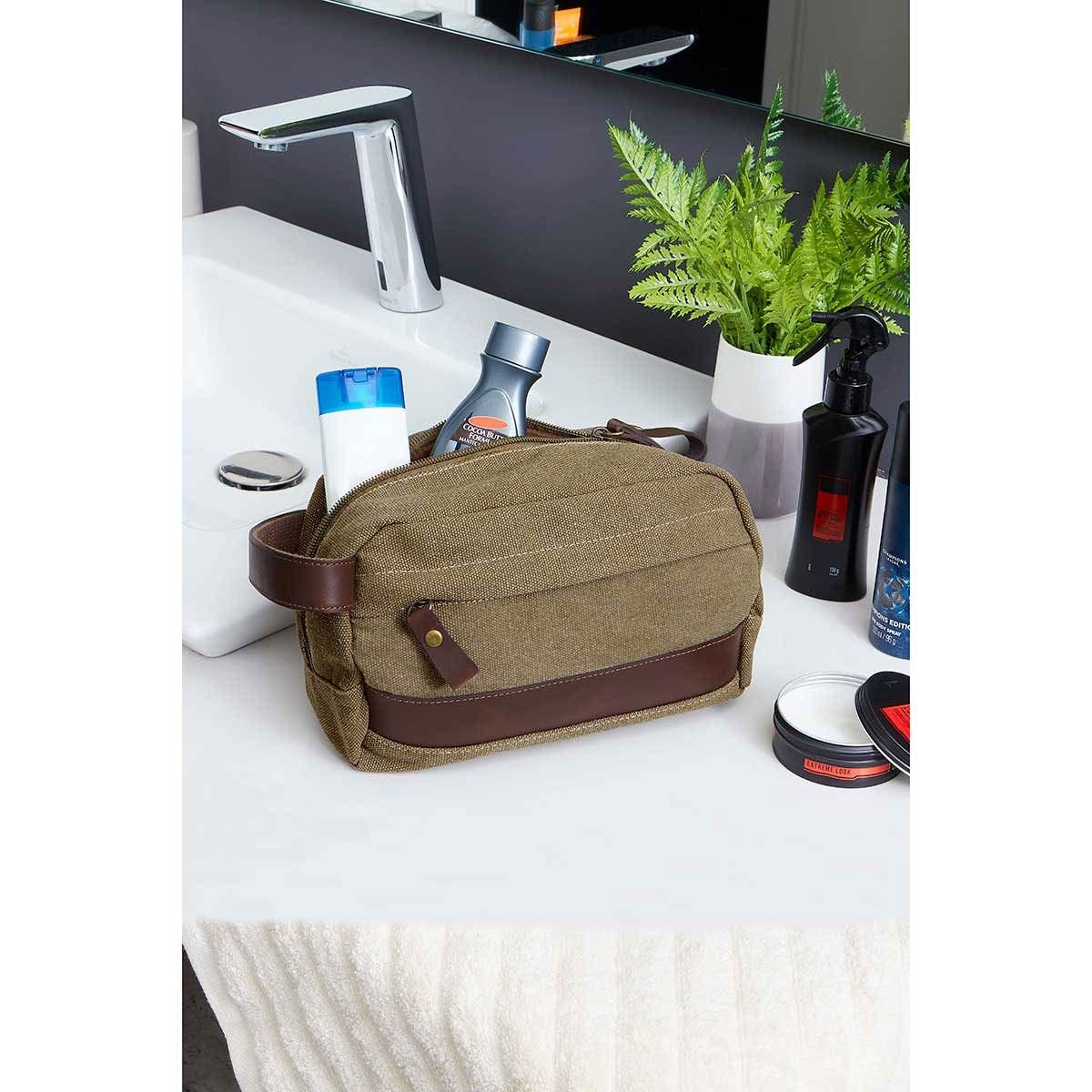 Neceser con asa, bolsa principal con cierre y compartimento interno.