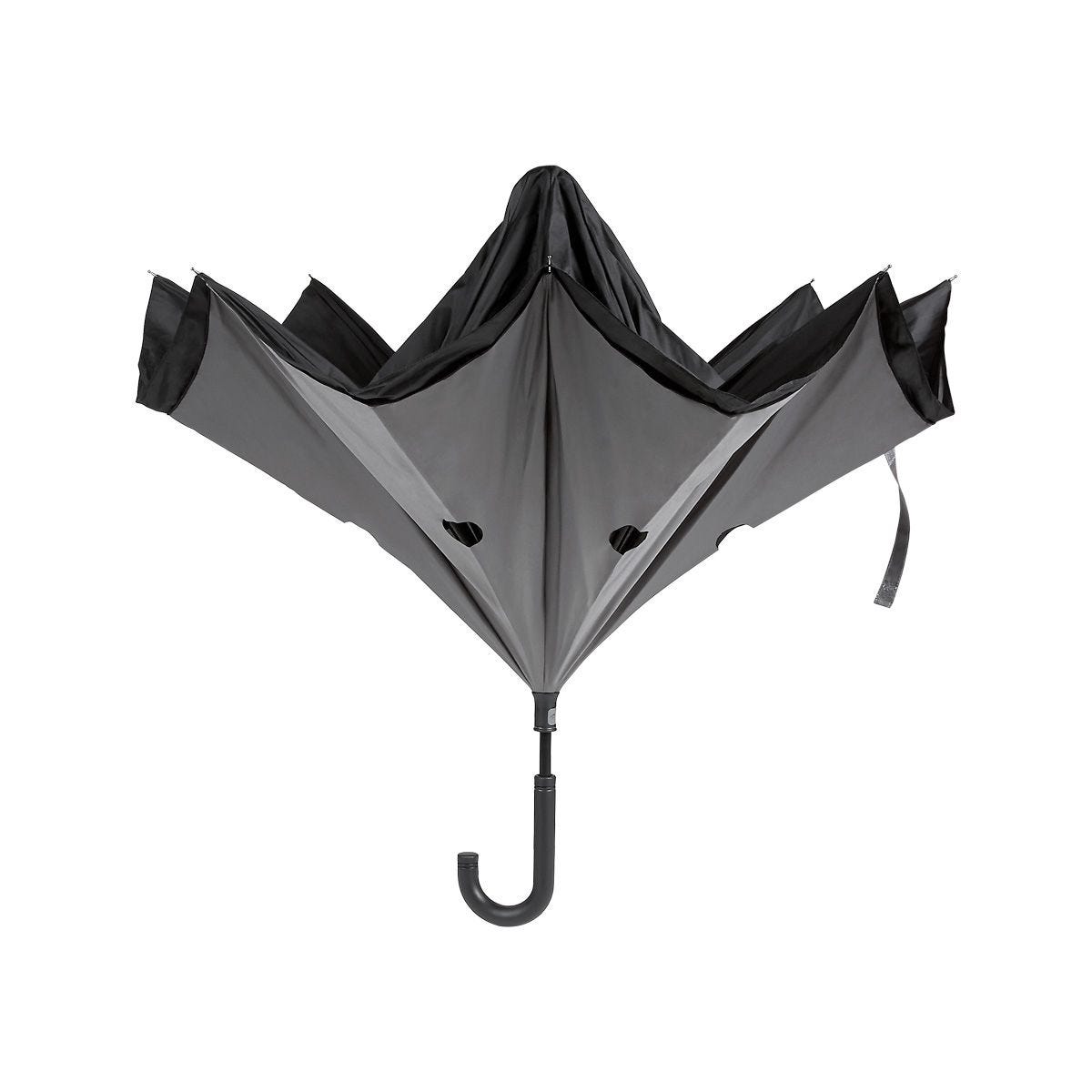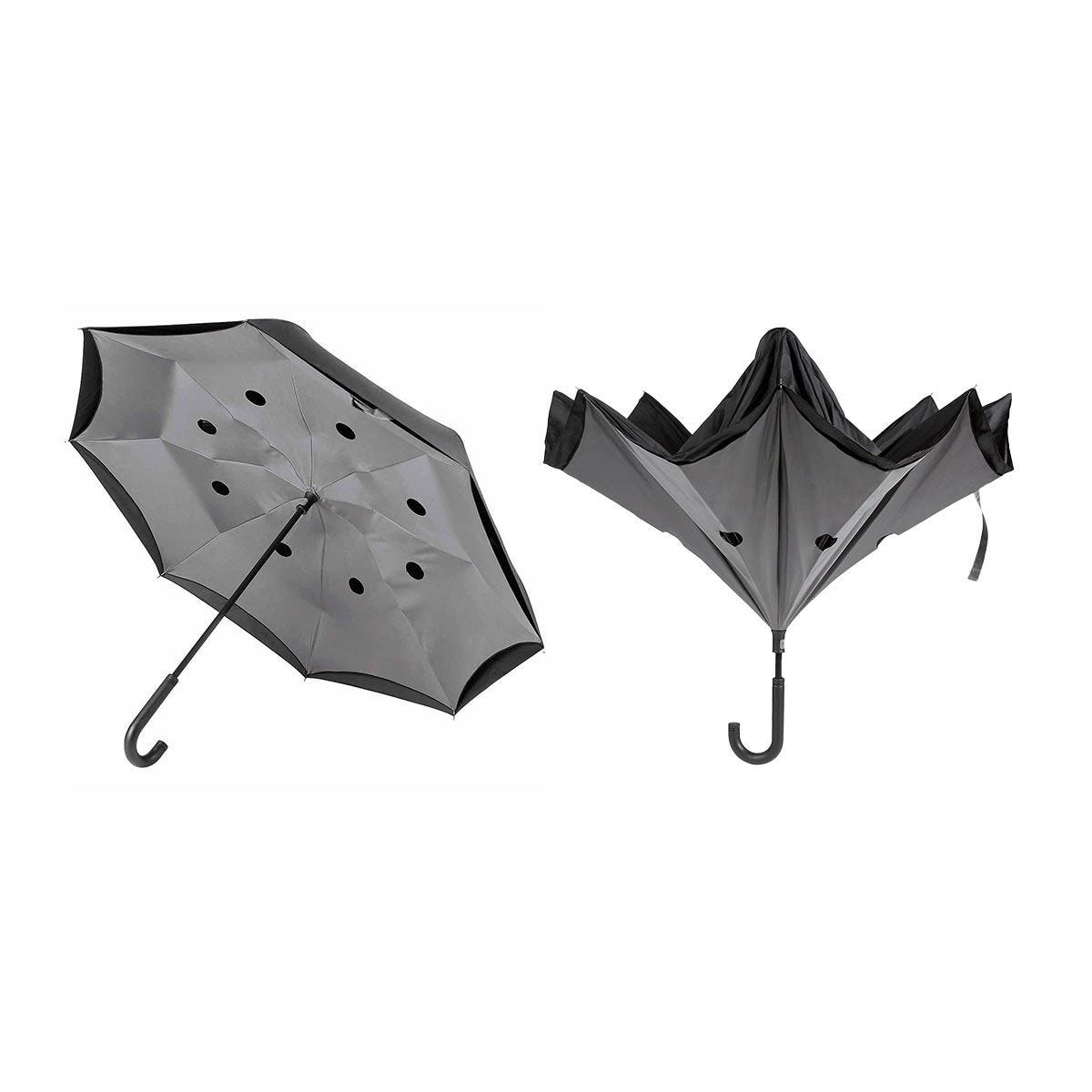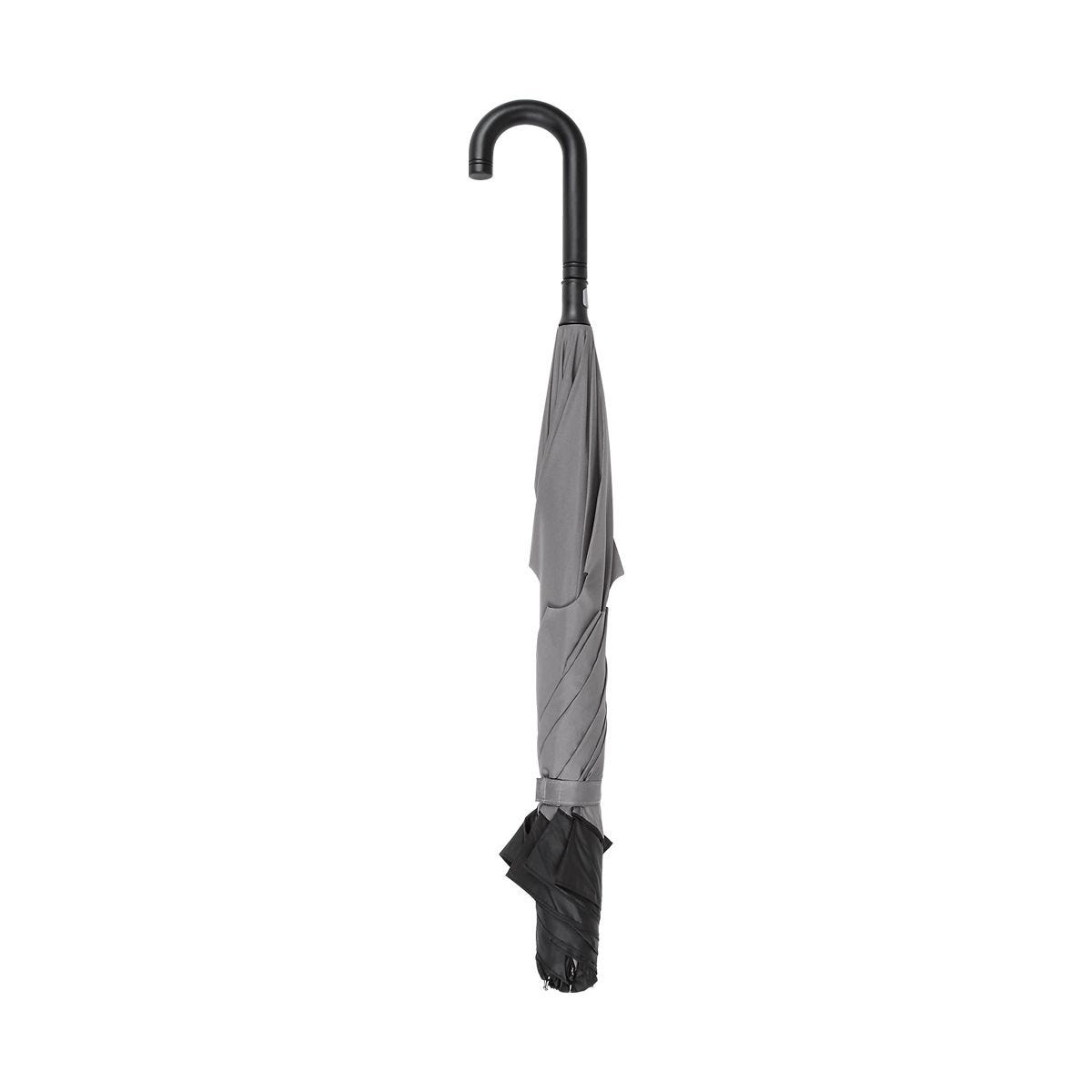 Paraguas reversible. Manual, 8 paneles dobles y mango de plástico. Incluye funda con correa.